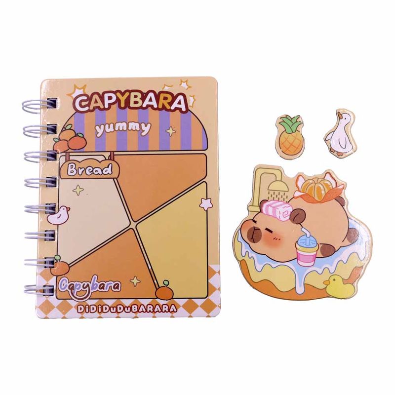 A Mini Agenda Espiral Capa Dura Capybara é perfeita para quem adora essa criaturinha fofa e quer manter a organização do dia a dia com muito estilo! Compacta e fácil de carregar, ela é ideal para anotar compromissos, tarefas e lembretes. Com capa dura resistente e encadernação espiral, oferece praticidade e durabilidade para o seu cotidiano.