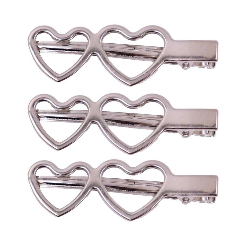 Apliques e Enfeites para LaçosAcessórios para CabeloPresilhas e Base de JacareBico De Pato Coraçao Duplo Vazado 23X70mm Em Ferro Com 20 Peças