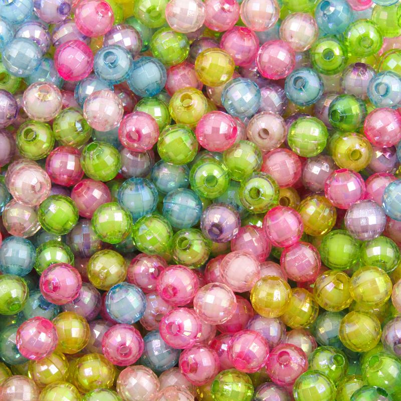 Bola Facetada Com Miolo Passante 08Mm Em Acrílico Com 50G