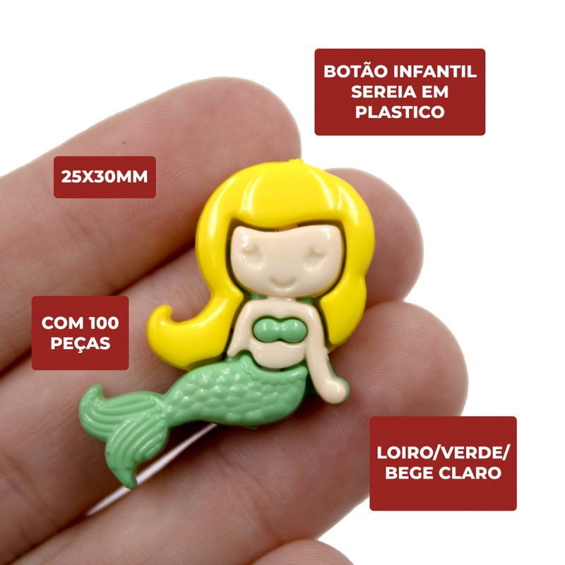 BOTÃO INFANTIL SEREIA 25X30MM 100PCS