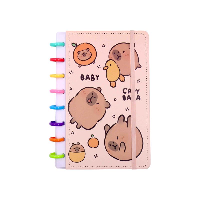 Organize-se com muito charme e personalidade com o Caderno Capivara Inteligente A5! Com capa fofa e sistema de disco removível, ele permite que você adicione, retire ou reorganize as folhas com facilidade. Perfeito para estudos, anotações, planners e tudo o que sua rotina precisa, com a companhia da capivara mais querida da papelaria!