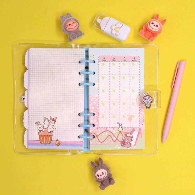 O Caderno Fichário Labubu é a combinação perfeita de organização e fofura! Com capa resistente e estampa do carismático personagem Labubu, ele conta com argolas práticas para adicionar ou remover folhas com facilidade. Ideal para escola, faculdade ou anotações do dia a dia, esse fichário vai conquistar os fãs de papelaria criativa e personagens colecionáveis!