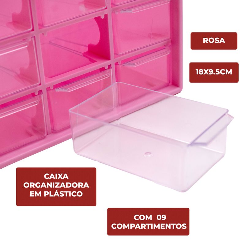 O gaveteiro organizador é uma solução prática e funcional para organizar diversos itens de forma acessível e otimizada. Fabricada em plástico resistente, possui 09 gavetinhas espaçosas que permite armazenar pequenos objetos como acessórios, bijuterias, itens de escritório, entre outros. Ideal para manter tudo em ordem e ao alcance das mãos, essa caixa é perfeita para quem busca organização sem abrir mão da praticidade e do estilo.