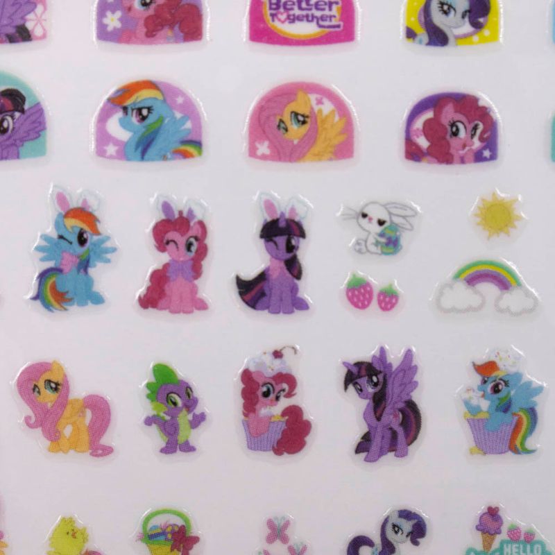 Produzido em plástico, a cartela de adesivos é muito usada e recomendada para crianças colarem nas unhas, com seus temas de desenhos voltados ao público infantil.