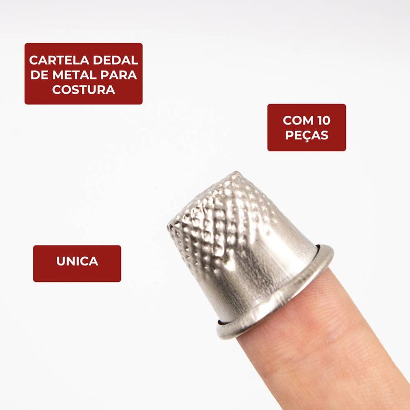 O dedal de metal para costura é um acessório essencial para proteger os dedos durante trabalhos manuais com agulha e linha. Feito de metal durável, este pequeno utensílio é projetado para deslizar suavemente sobre o dedo indicador ou médio, oferecendo uma camada adicional de proteção contra perfurações acidentais.