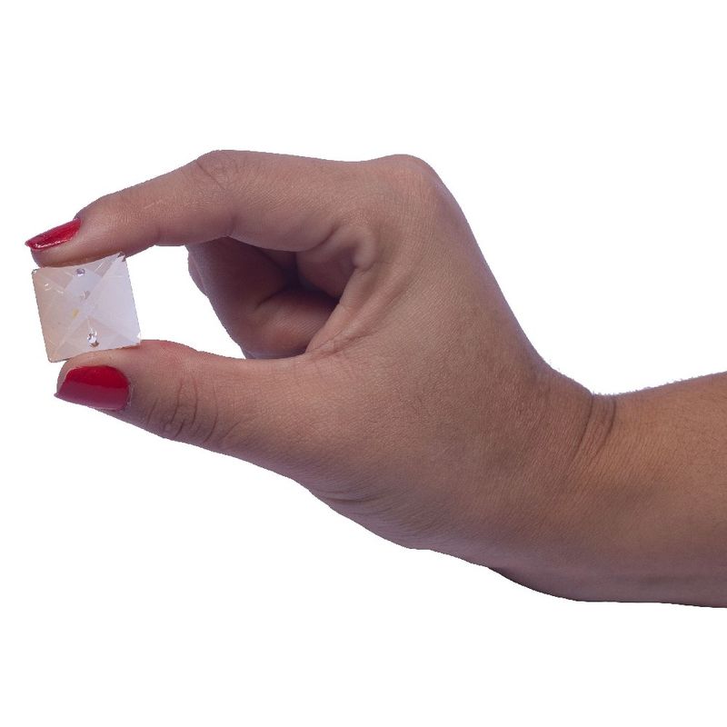 Produzido em vidro, a castanha quadrada é ideal para confecção de lustres, cortinas e artesanatos em geral.