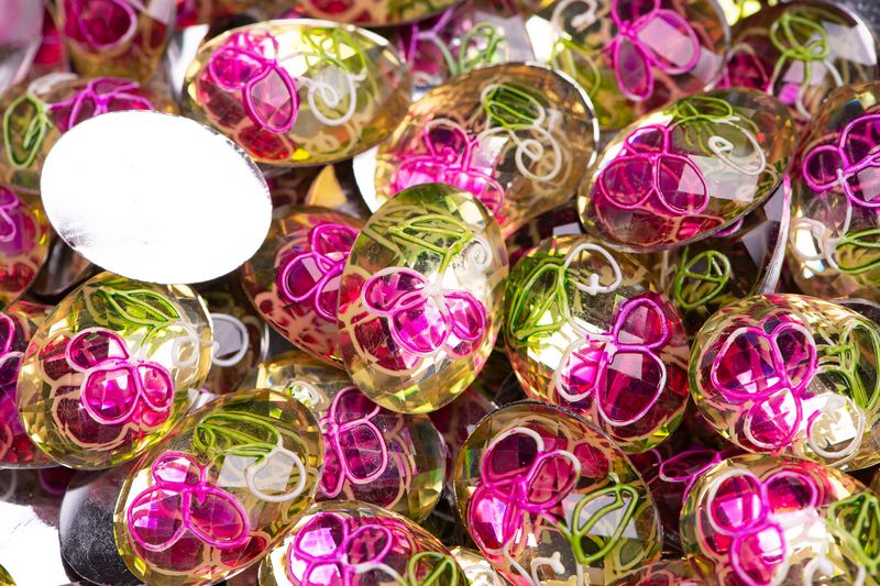 Chaton Para Colagem Oval Relevo Flor 18X25mm Em Acrilico 250Gr