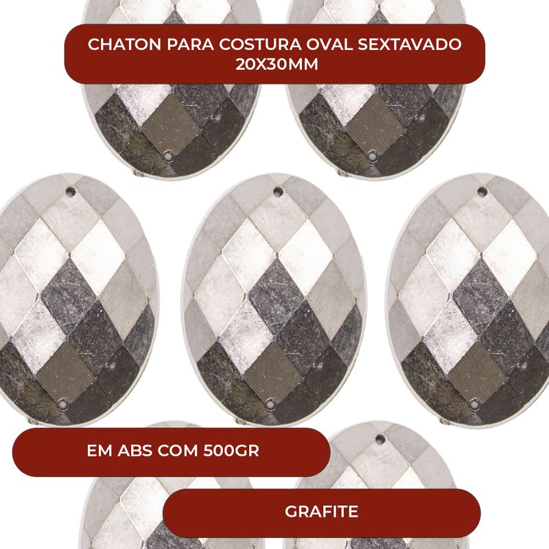 CHATON PARA COSTURA OVAL SEXTAVADO 20X30MM EM ABS COM 500GR