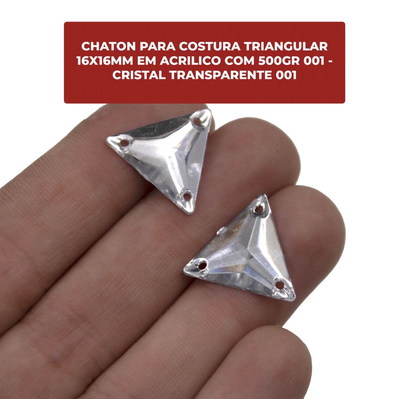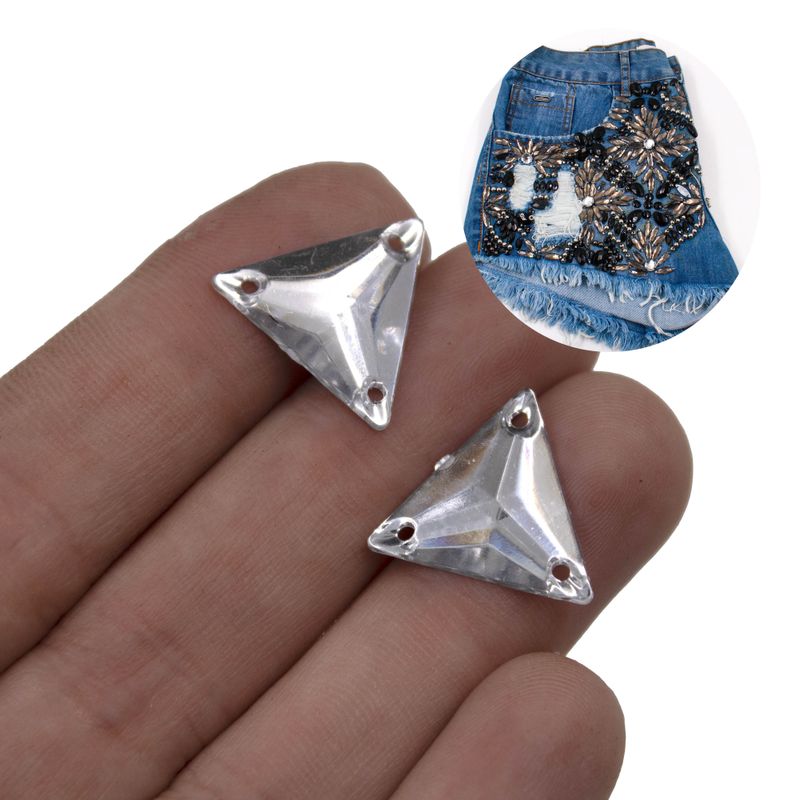 Produzido em acrílico, o chaton triangular é ideal para confecção e customização em roupas, bolsas, chapéus e artesanatos em geral