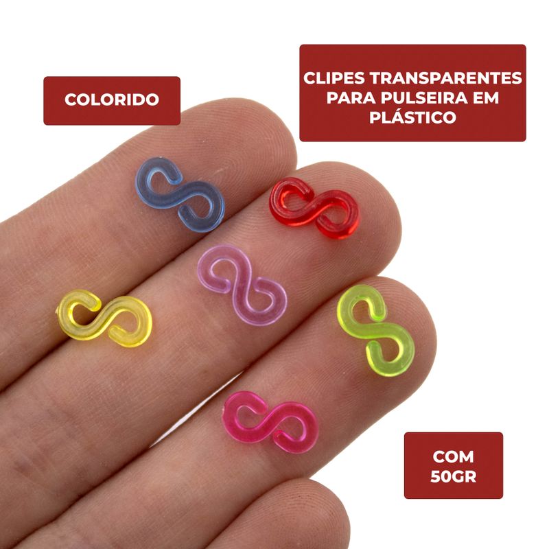 Produzido em plástico, os clipes transparentes para pulseira são ideiais para finalização de pulseiras produzidas através de elasticos, colares e artesanatos em geral.