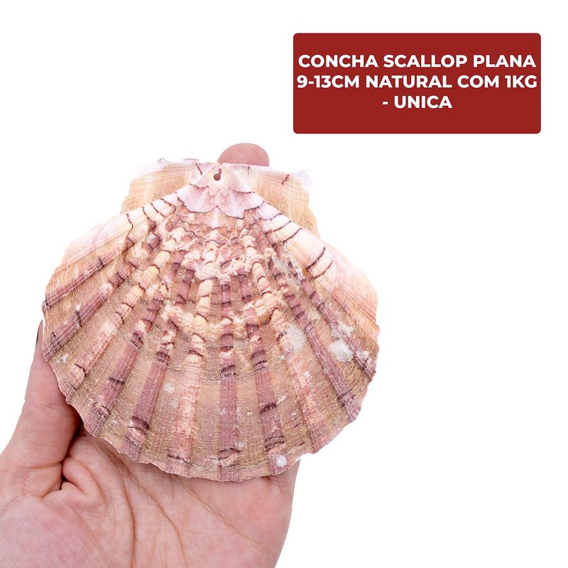 Concha Scallop Plana natural, de formato arredondado e textura delicada, com tons sutis que remetem à beleza do oceano. Perfeita para uso em artesanatos, decorações e composições temáticas. Cada peça é única, trazendo o charme e a autenticidade do mar para suas criações.