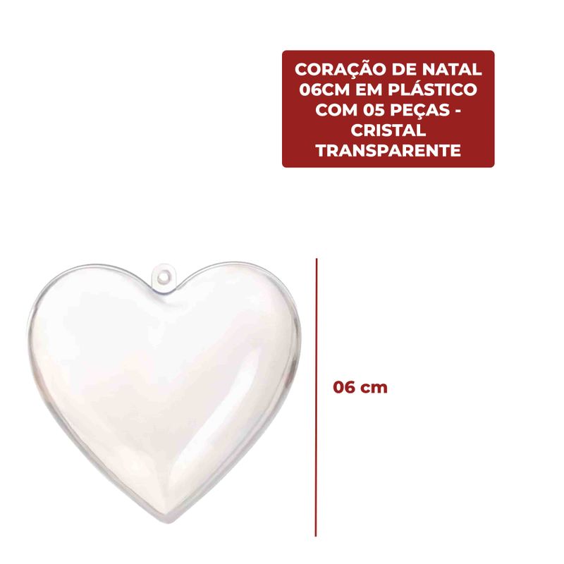 O coração de natal, são pequenas esferas ocas produzidas em plástico. São ideais para enfeitar a árvore de Natal, criar lembrancinhas personalizadas, porta-fotos e artesanatos em geral.