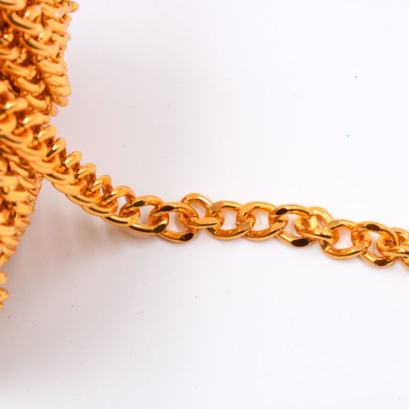Produzido em aluminio, a corrente é ideal para confecção e customização em roupas, bolsas, bijuterias, lembrancinhas, decorações e artesanatos em geral
