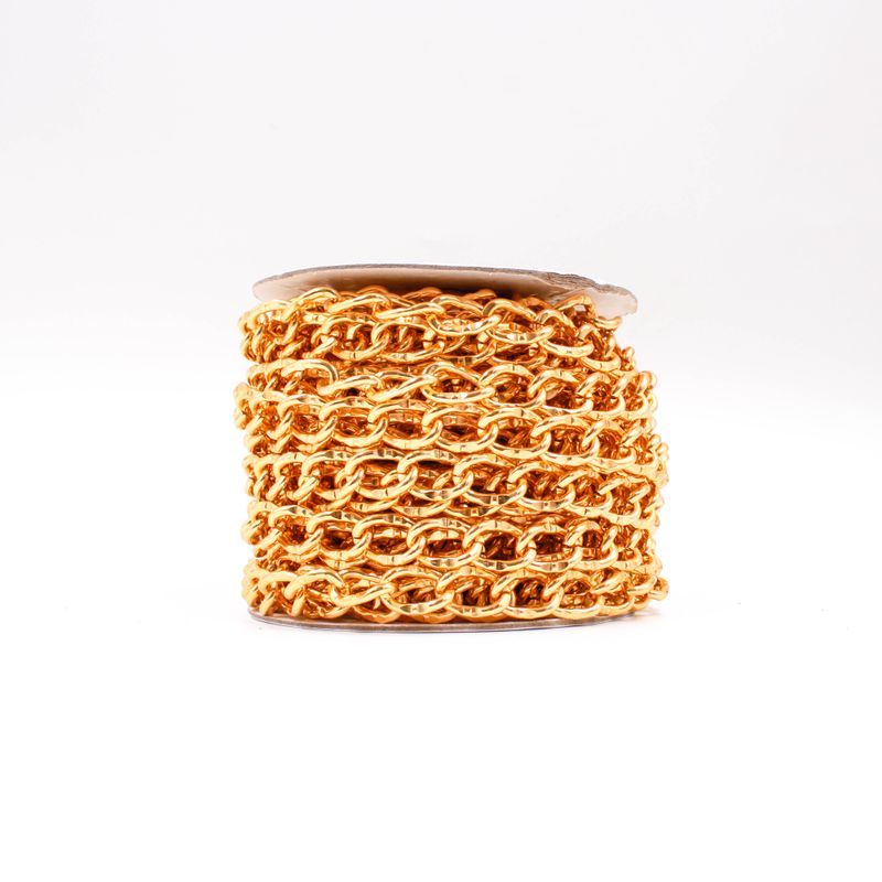 Produzido em aluminio, a corrente é ideal para confecções e customizações em roupas, bolsas, bijuterias, chaveiros, lembrancinhas, decorações e artesanatos em geral