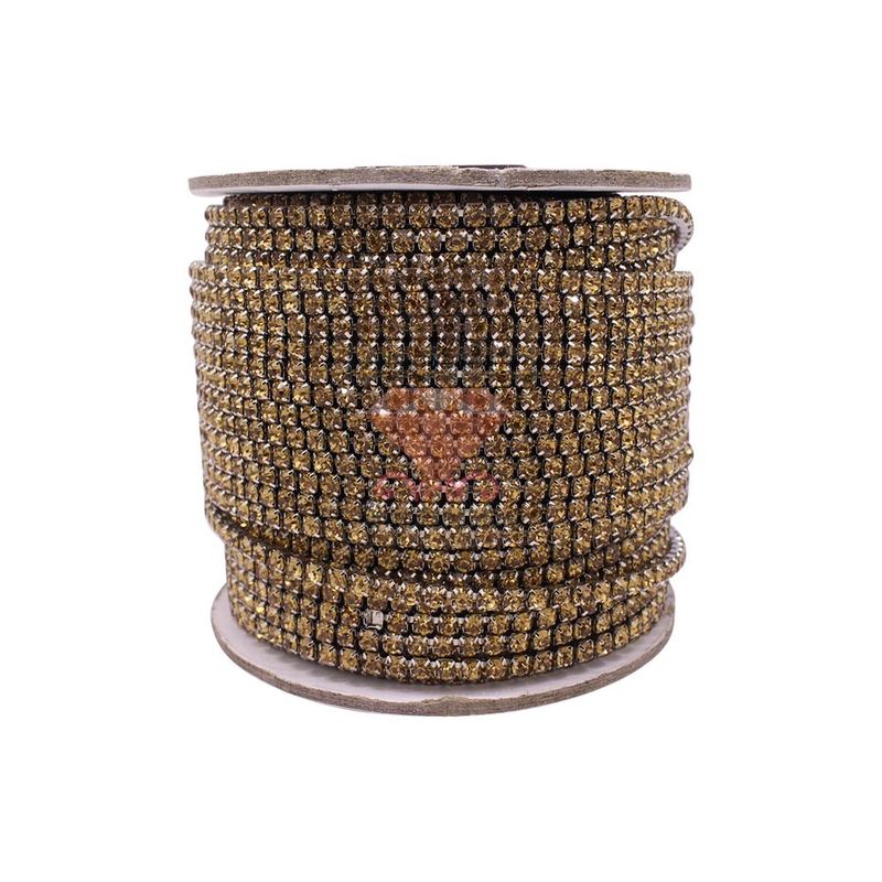 Produzida em vidro, a corrente de STRASS junta possui um brilho único proporcionando um acabamento luxuoso em suas peças. Com ela é possível criar e realizar acabamento em peças de roupas, chinelos, óculos, bijuterias e artesanatos em geral. Sua base é produzida em latão para garantir a qualidade do produto e evitar que as pedras se soltem.