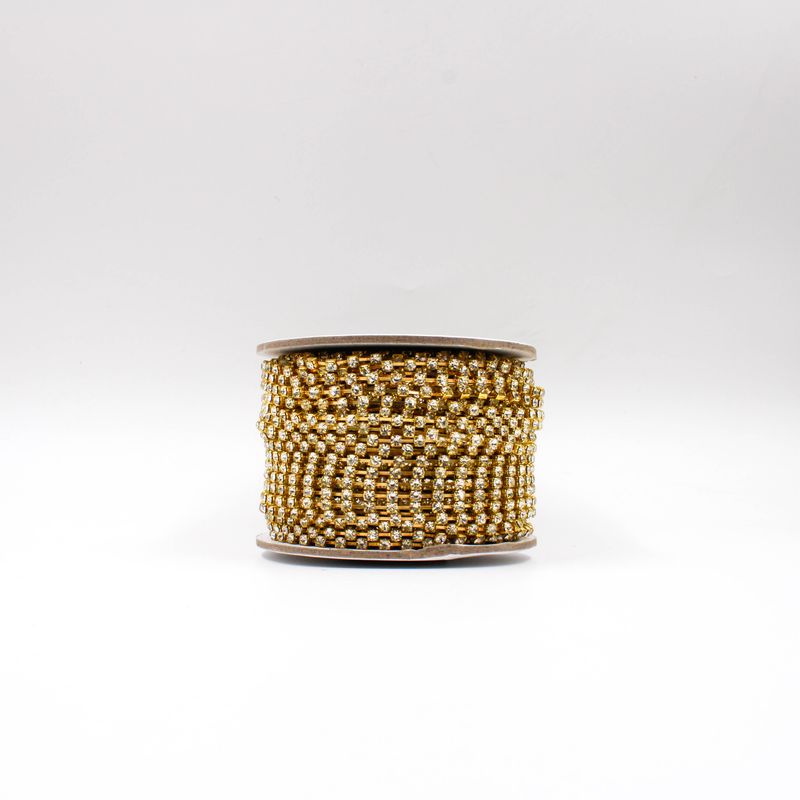 Produzido em vidro, a corrente de strass é ideal para confecção e customização em laços, tiaras, presilhas, roupas, sandalias, roupas, bijuterias, lembrancinhas, decorações e artesanatos em geral.