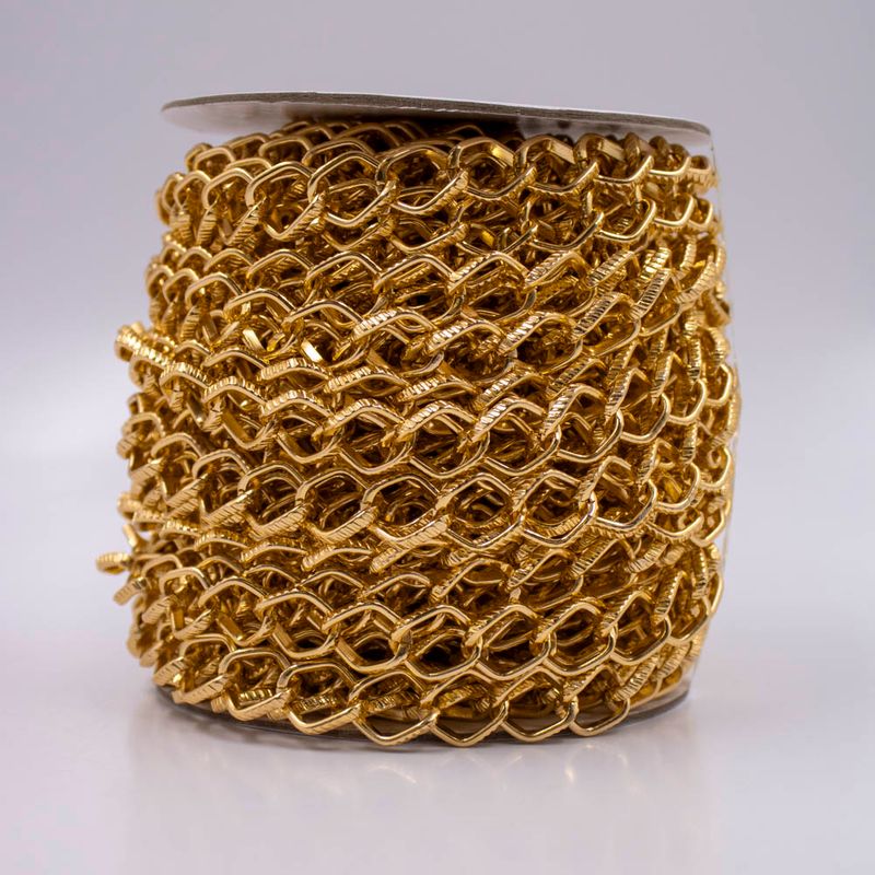 Produzido em aluminio, a corrente groumett é ideal para confecção e customização em roupas, bijuterias, decorações, lembrancinhas e artesanatos em geral.