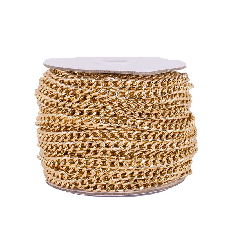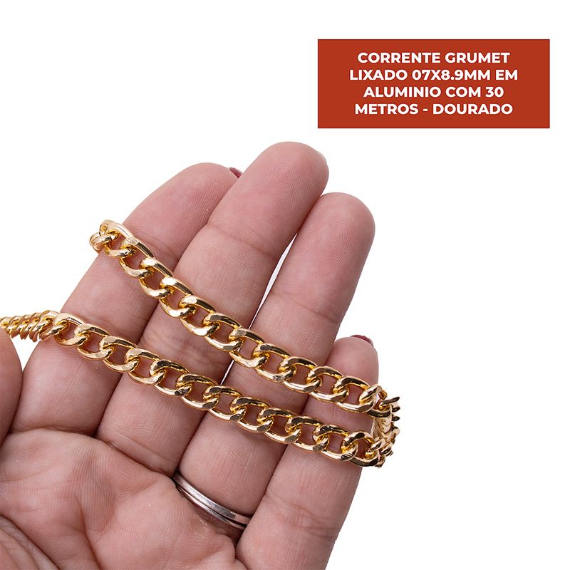Corrente Grumet Lixado em Alumínio — moderna e cheia de estilo. Possui elos entrelaçados com acabamento lixado que realça o brilho fosco do alumínio, trazendo um visual elegante e contemporâneo. Leve, resistente e fácil de trabalhar, é ideal para criar colares, pulseiras ou detalhes decorativos com um toque sofisticado e urbano.