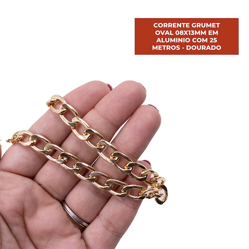 Corrente Grumet em Alumínio — clássica, resistente e com brilho marcante. Seus elos interligados formam um desenho uniforme e elegante, perfeito para compor colares, pulseiras ou aplicações criativas. O alumínio garante leveza e durabilidade, mantendo o visual moderno e versátil em qualquer projeto.