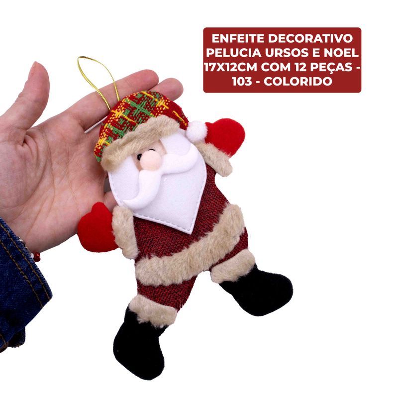 Decore seu ambiente com muito mais charme e personalidade com os enfeites decorativos de pelucia. Feitos em poliester e com estampas natalinas encantadoras como Papai Noel, boneco de neve e rena, essas essas pelucias são ideais para transformar sua casa, loja ou escritório em um cenário mágico e acolhedor.