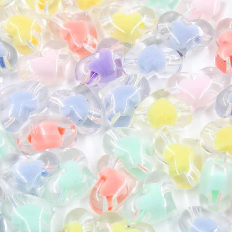 Produzido em acrílico, coração com miolo é ideal para confecção e customização em bijuterias, roupas, bolsas, chaveiros, lembrancinhas e artesanatos em geral