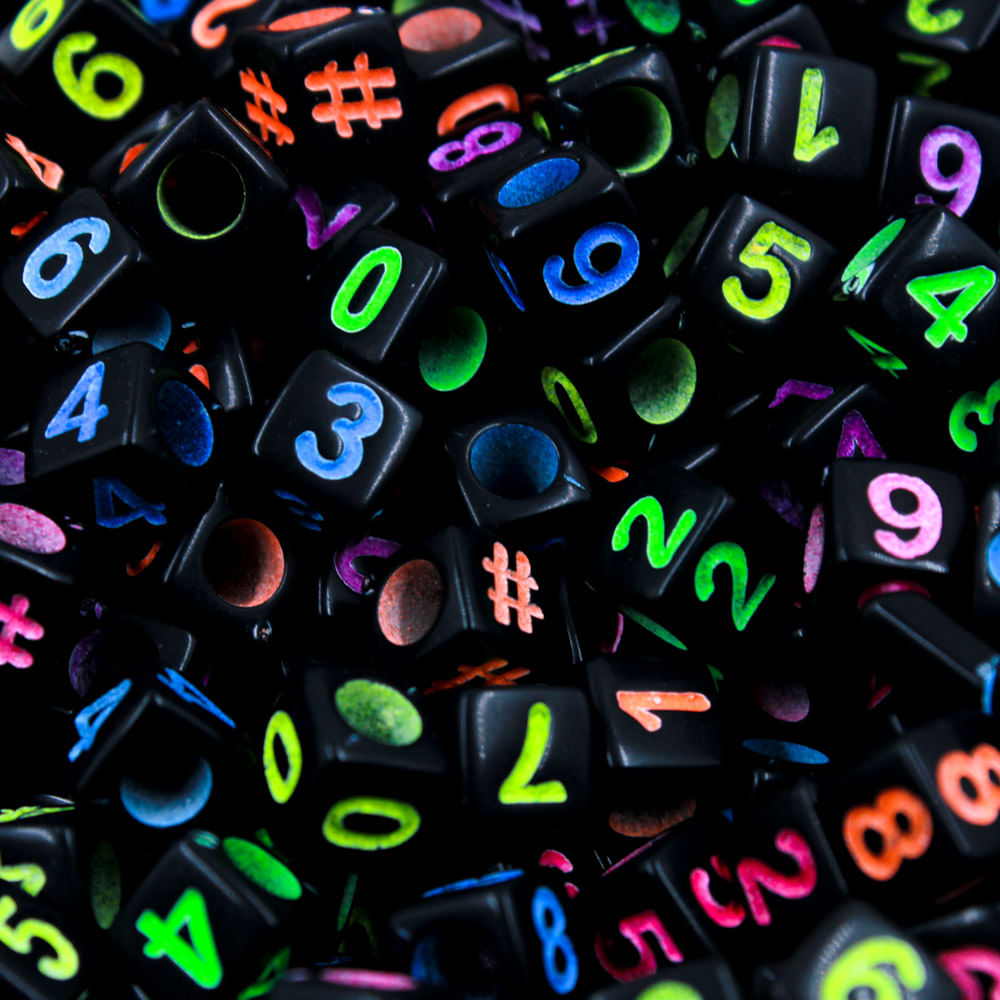 Produzido em plástico,o entremeio quadrado de numeros é ideal para confecção de bijuterias, chaveiros, lembrancinhas e muito mais