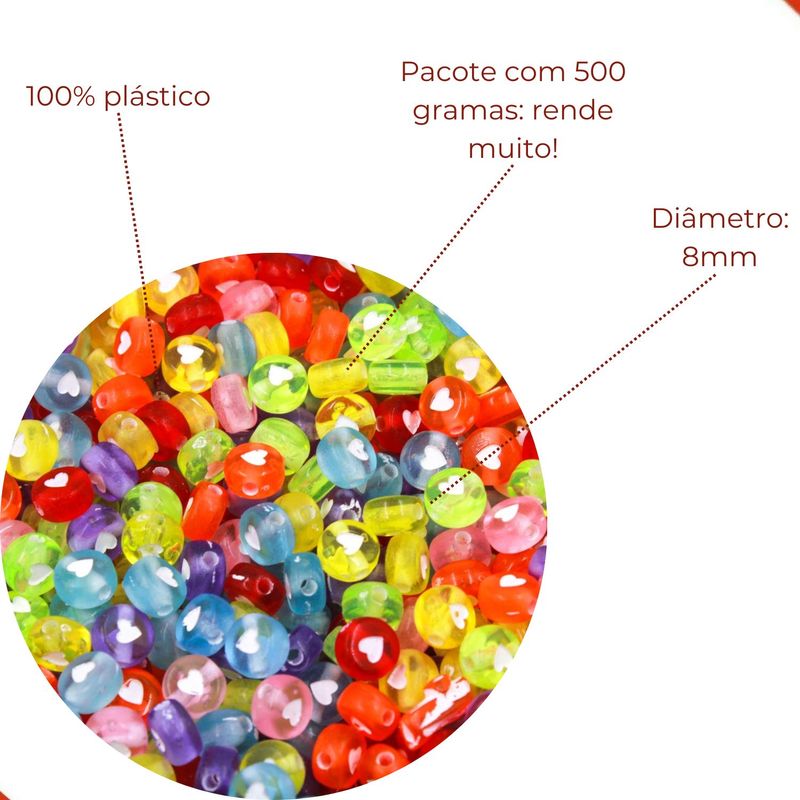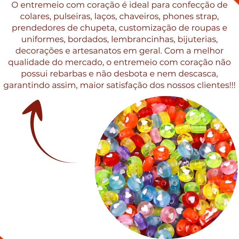 Produzido em plástico, o entremeio com coração é ideal para confecção de bijuterias, chaveiros, lembrancinhas e muito mais