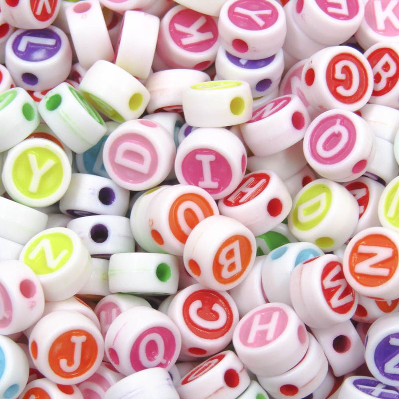 Produzido em plástico, o entremeio redondo letras, é ideal para confecção de bijuterias, chaveiros, lembrancinhas e muito mais...