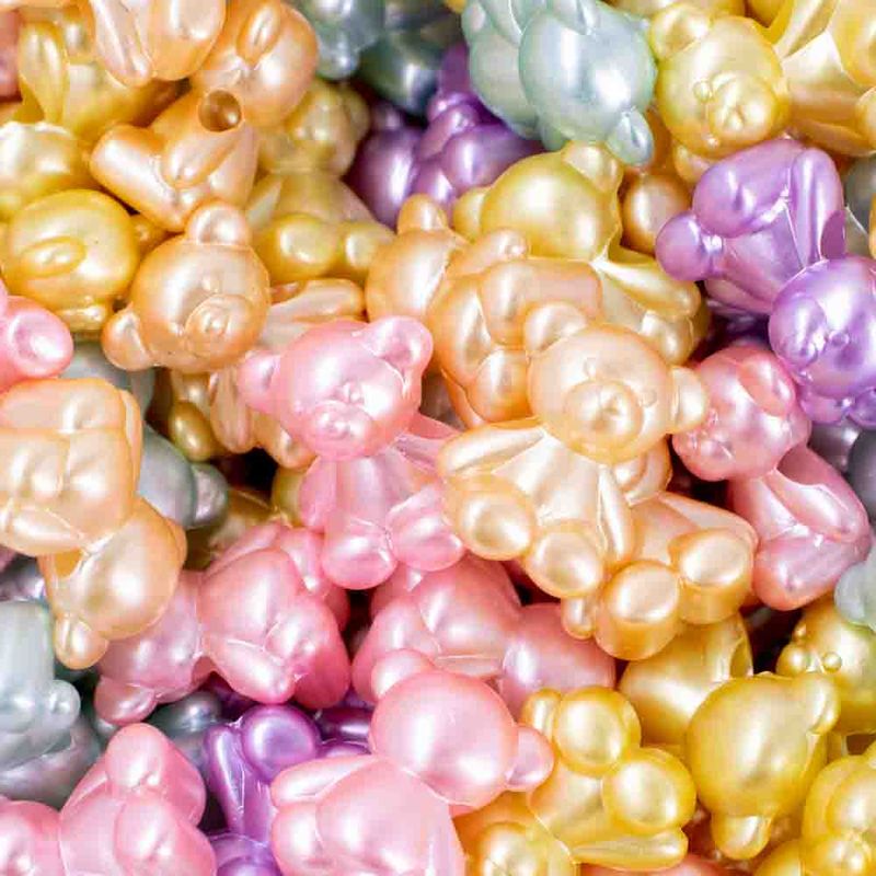Produzido em plástico, o entremeio urso é ideal para confecção de bijuterias, chaveiros, lembrancinhas e muito mais