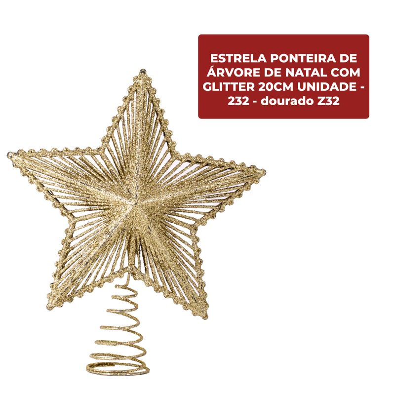 Adicione um toque especial à sua decoração natalina com a nossa Estrela Ponteira! Produzida com acabamento em glitter, ela traz brilho, elegância e o verdadeiro espírito de Natal para a sua árvore. Leve, fácil de fixar e com design encantador, é o detalhe que faltava para tornar a sua festa ainda mais mágica. Ideal para árvores de diversos tamanhos, essa estrela é perfeita para deixar o seu Natal ainda mais iluminado e cheio de charme.