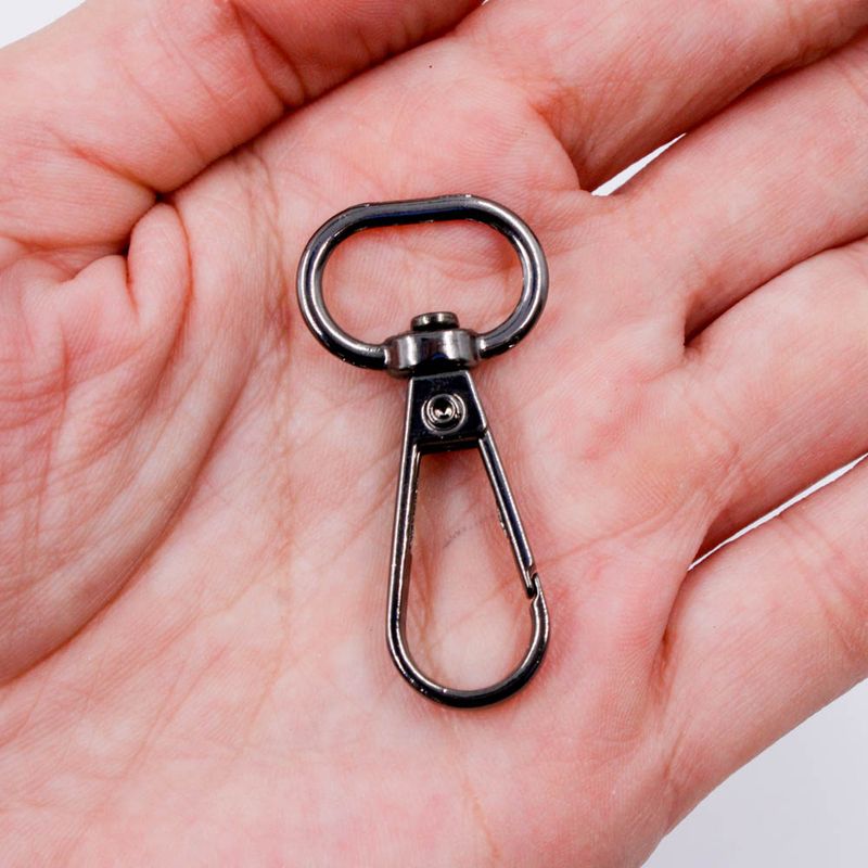 Produzido em zamak, o fecho mosquetão é ideal para montagem de bolsas, chaveiros, lembrancinhas e artesanatos em geral.