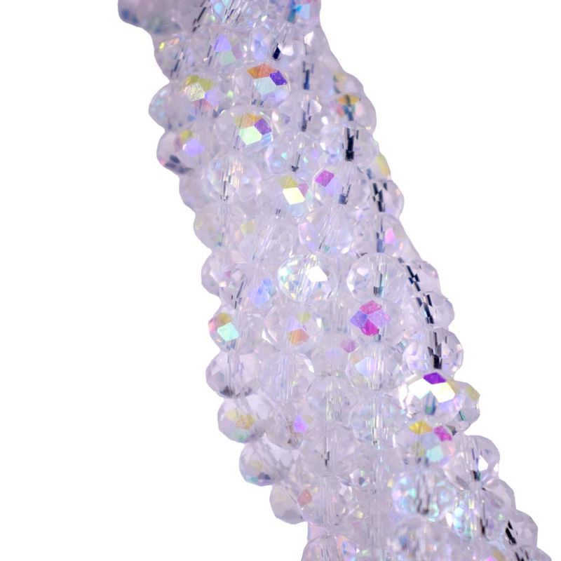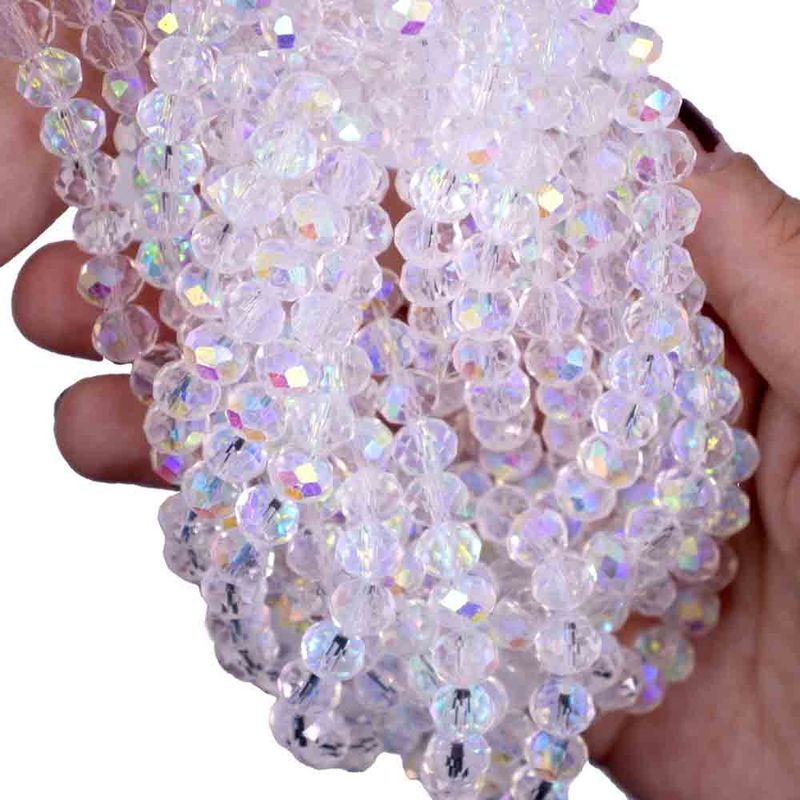 Transforme suas criações com o brilho único do fio de cristal transparente irisado. Suas contas translúcidas com acabamento iridescente refletem uma delicada paleta de cores, conferindo um toque mágico e sofisticado a colares, pulseiras e projetos decorativos. Perfeito para quem busca unir versatilidade e elegância em peças exclusivas.
