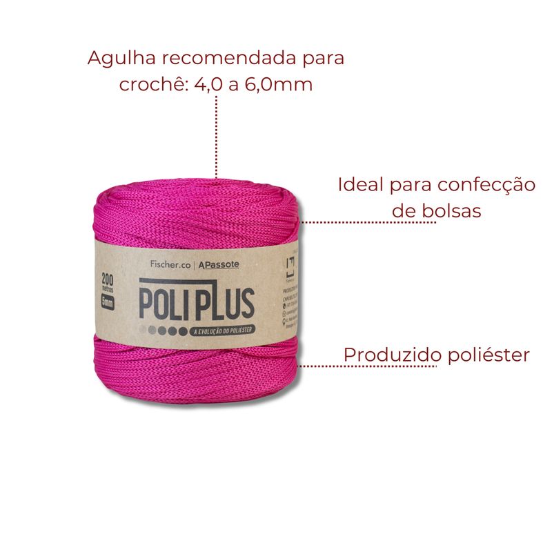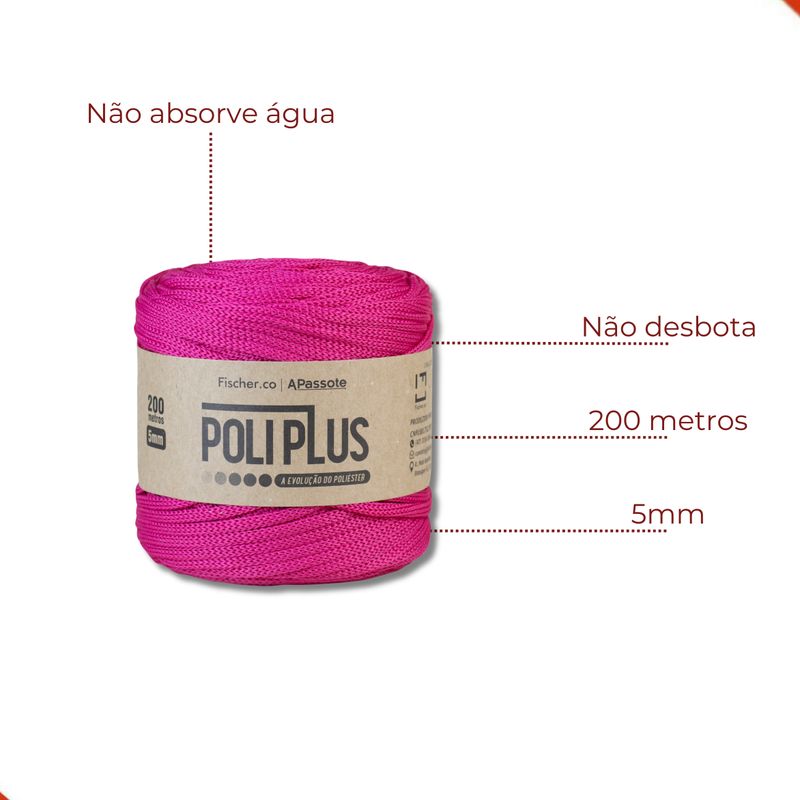 O Fio Poli Plus veio como uma evolução do Fio de Poliéster, em um equilíbrio perfeito entre leveza e estrutura. Sua melhor característica é sua leveza e maciez ao crochetar aliada a grande estrutura nas peças finais. Produzido com 100% Poliéster de altíssima qualidade. Um fio de extrema elegância e desenvolvido com uma cartela de cores selecionada e assertiva. Seu rendimento é de 200 metros (rendimento ideal para produção de peças médias – grandes) Poli Plus foi desenvolvido pela Fischer em parceria com a artesã Andréia Passote, que vem como embaixadora do Fio Poli Plus, trazendo muitos conteúdos para utilização deste fio. Ele é ideal para peças como Bolsas, Sousplast, Cachepôs e artesanatos em geral.