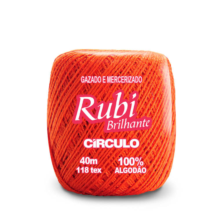 Composto de 100% algodão gazado e mercerizado, o fio Rubi tem espessura levemente maior e textura mais marcante no bordado. Possui brilho e cores firmes e é indicado para bicos de crochê, ponto cruz e ponto cheio.