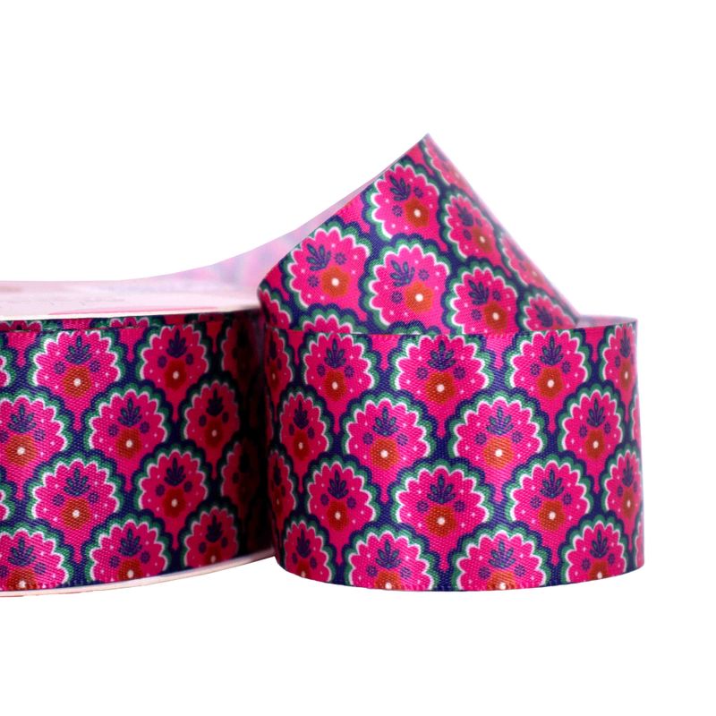 Fita Estamapada Floral 38Mm Em Poliester Com 9 Metros