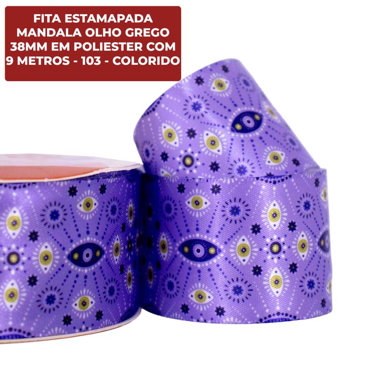 Fita Estamapada Mandala Olho Grego 38Mm Em Poliester Com 9 Metros