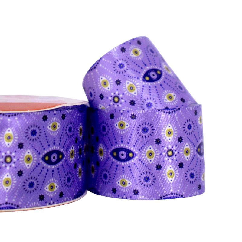 AviamentosFitas e TecidosFita Cetim EstampadaFita Estamapada Mandala Olho Grego 38Mm Em Poliester Com 9 Metros