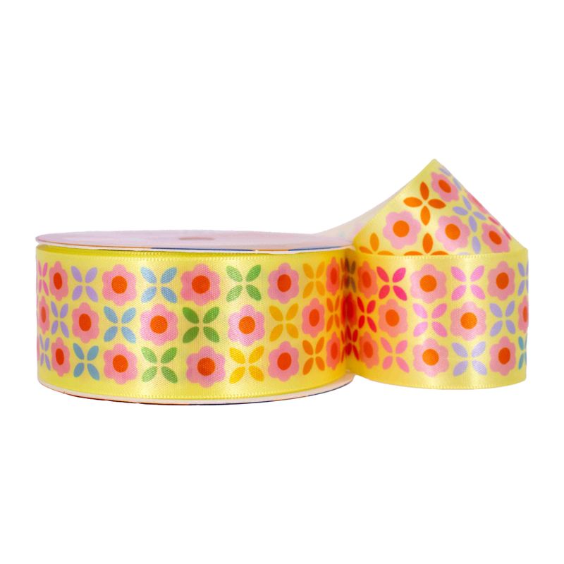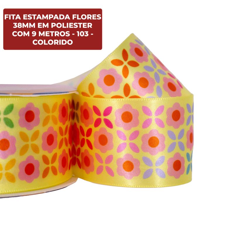Fita Estampada Flores 38Mm Em Poliester Com 9 Metros