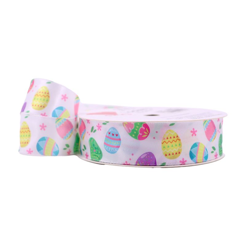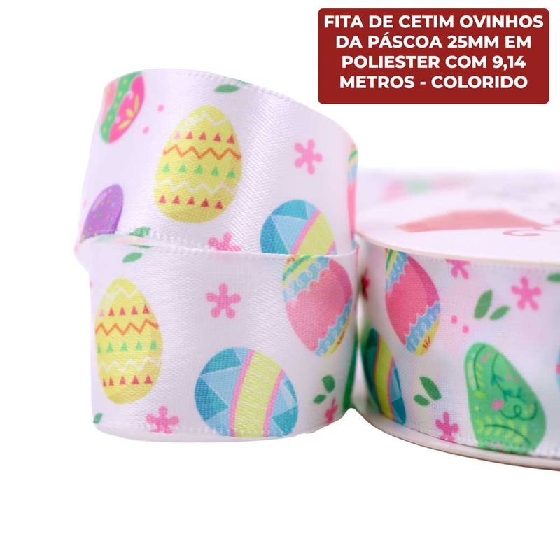 A Fita de Cetim Ovinhos da Páscoa é perfeita para dar um toque especial e temático às suas criações! Com uma estampa delicada de ovinhos coloridos, essa fita traz charme e alegria para seus projetos de Páscoa.