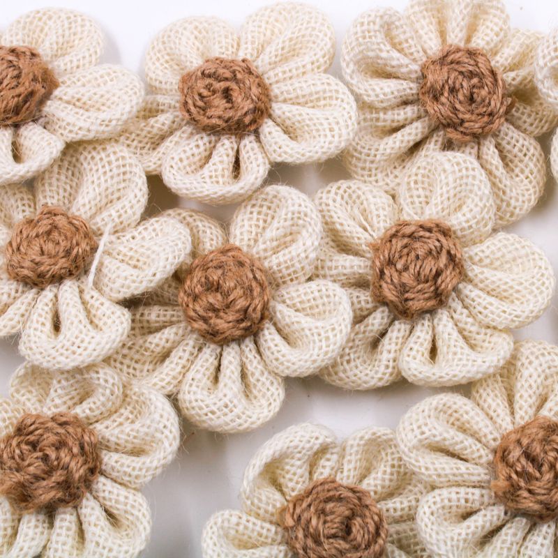 Produzida em juta, a flor é ideal para confecção e customização em roupas, chapéus, decorações e artesanatos em geral.