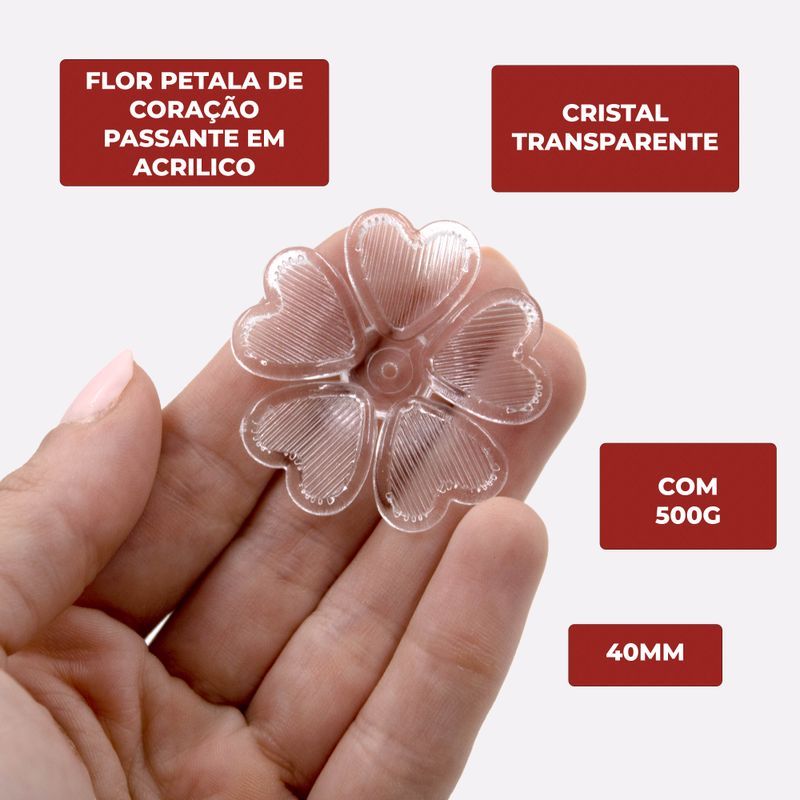 A Flor com Pétala de Coração Passante em Acrílico é o detalhe perfeito para quem busca adicionar um toque romântico e delicado às suas criações. Com pétalas em formato de coração, essa peça encantadora é ideal para a confecção de colares, pulseiras, brincos e outros acessórios. Feita em acrílico de alta qualidade, a flor oferece durabilidade e um brilho sutil que destaca qualquer projeto. O design passante facilita a montagem, permitindo combinações criativas com outros materiais e proporcionando um acabamento refinado e charmoso. Traga mais amor e beleza aos seus artesanatos com esta peça especial!