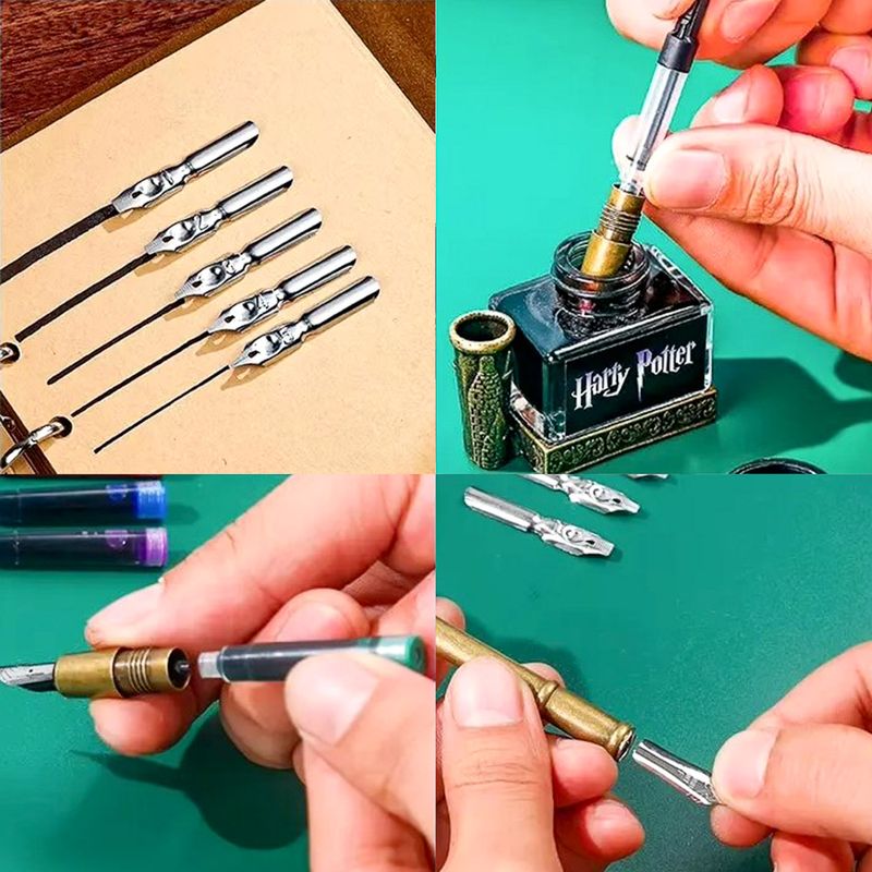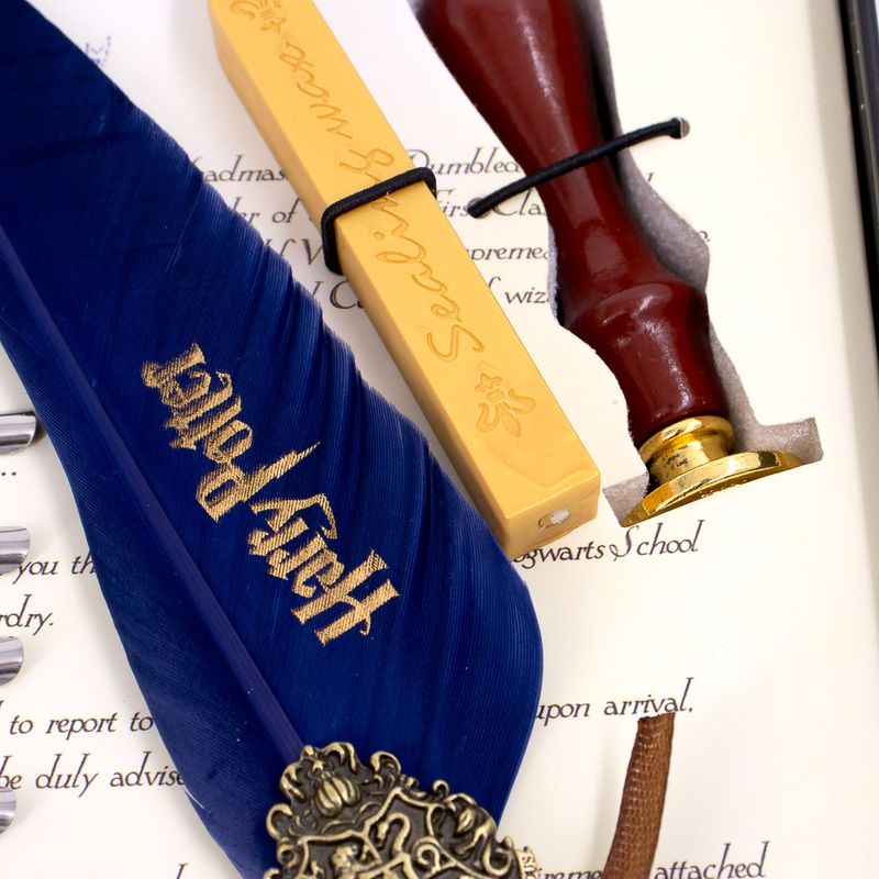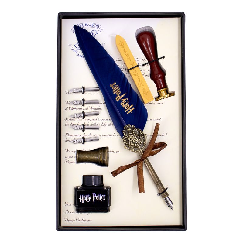 Um verdadeiro tesouro para os fãs do mundo bruxo! Este kit traz toda a elegância e o charme da escrita à moda antiga, inspirado no universo mágico de Harry Potter. Acompanha uma caneta tinteiro com pena decorativa, frasco de tinta, ponteiras metálicas e carimbo com bastão de cera para lacres personalizados. Cada detalhe remete à atmosfera clássica de Hogwarts, tornando o conjunto perfeito para colecionadores, amantes da escrita ou para presentear quem aprecia o toque retrô e encantador da magia.