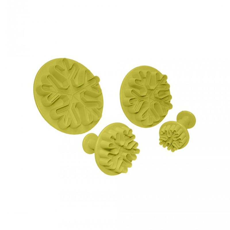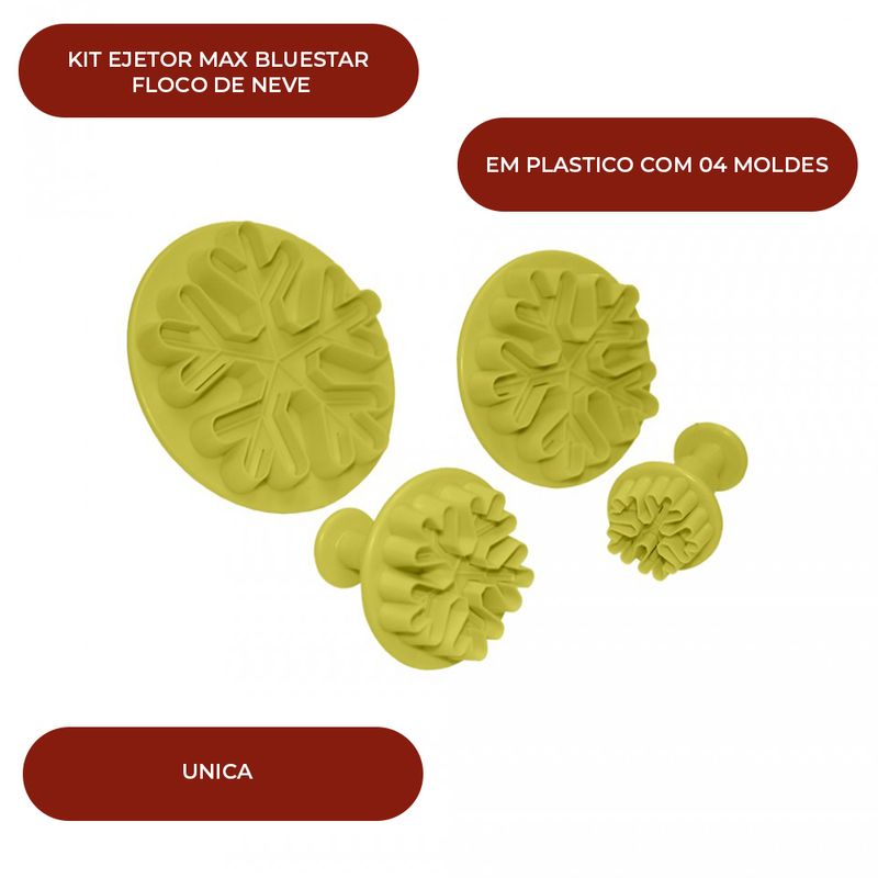 Três funções em um só produto: corte, marque detalhes e ejete a massa com acabamento surpreendente! Uma embalagem do Kit Ejetor Marcador Floco de Neve I é composto por quatro cortadores de diferentes tamanhos, assim você tem muito mais opções de decoração.
