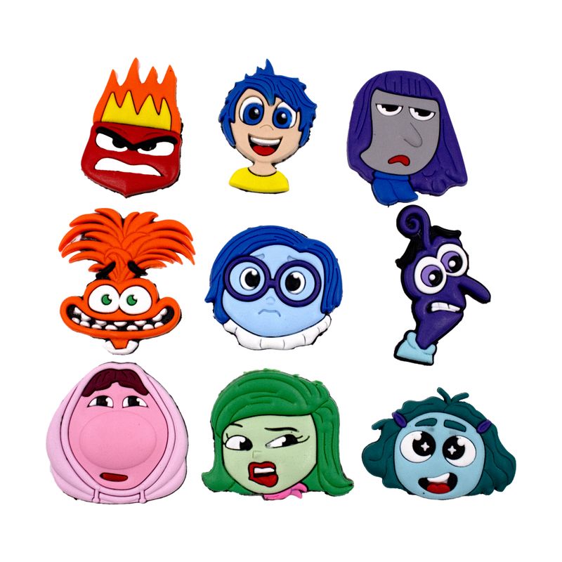 Tamanhos: Nojinho 45X38MM | Tristeza: 40X38MM | Raiva: 30X44MM | Medo: 29X46MM | Alegria: 30X42MM | Inveja: 45X30MM | Tédio: 42X36MM | Vergonha: 41X41MM