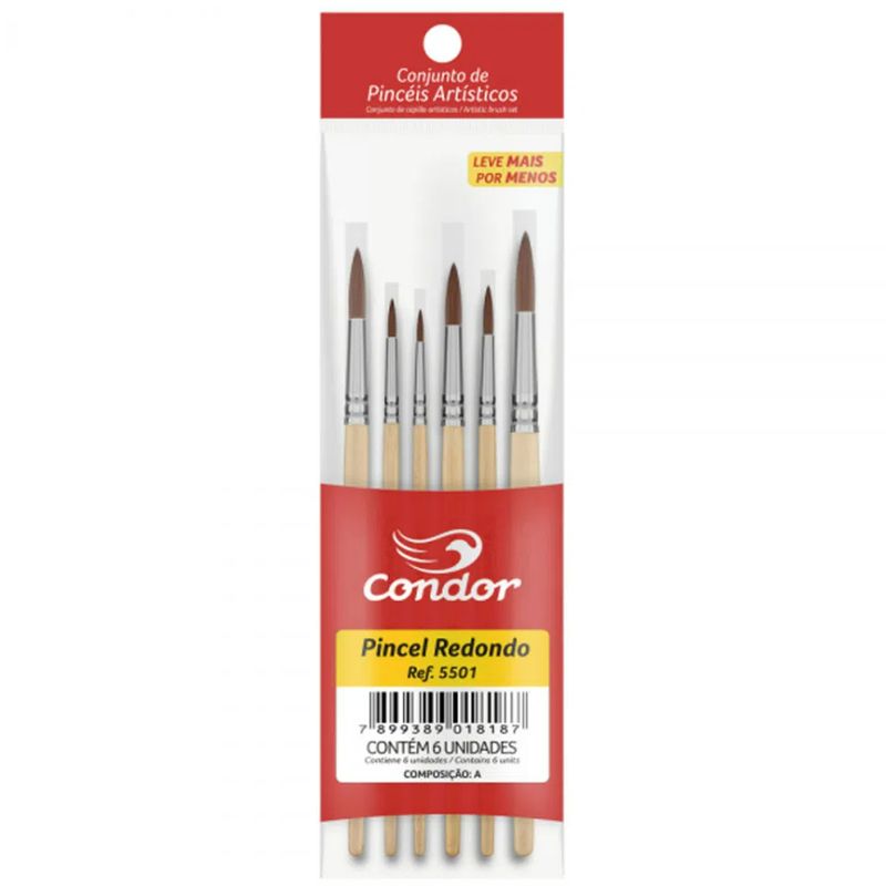 O Kit de Pincéis Redondo da Condor traz pra você precisão e qualidade para a sua pintura. O jogo é composto por 6 pincéis redondos do modelo 5501 das seguintes numerações: 6, 8, 12, 18, 20 e 24. Possuem filamento sintético com extrema maciez, ideais para pintura de base, acabamentos e detalhes em madeira, tela, papel e em superfícies lisas, cabo de madeira soft e leve, e virola metálica. Indicado para pinturas em madeira, papel, tela, superfícies suaves como vidro e metal.