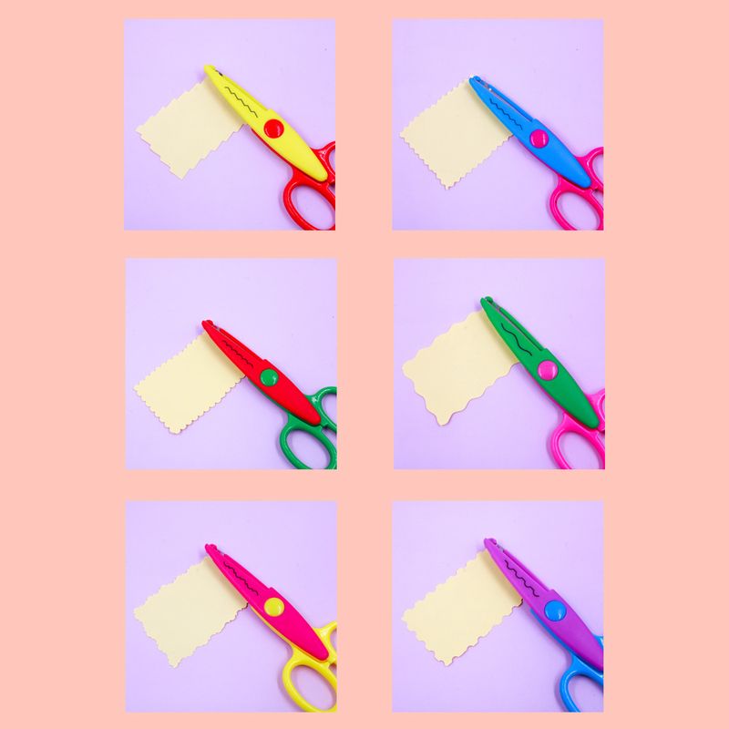 Produzida em plástico, o kit de tesouras de picotar é ideal para realizar cortes em zigue-zague, sendo perfeito para o artesanato.