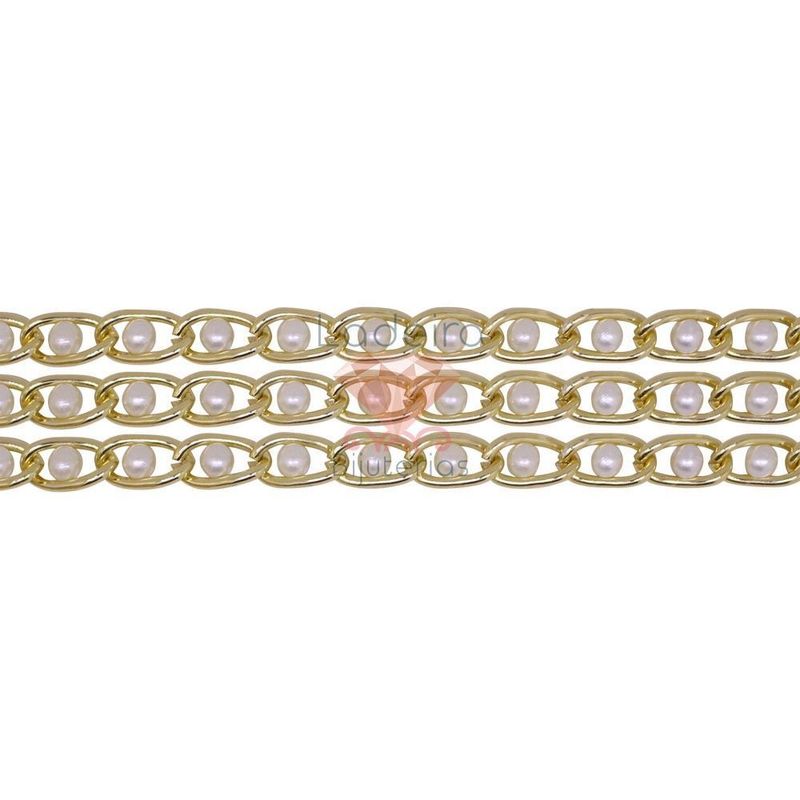 CORRENTE DE ALUMINIO COM PEROLA ABS 6MM ROLO COM 25 METROS Ref 004418