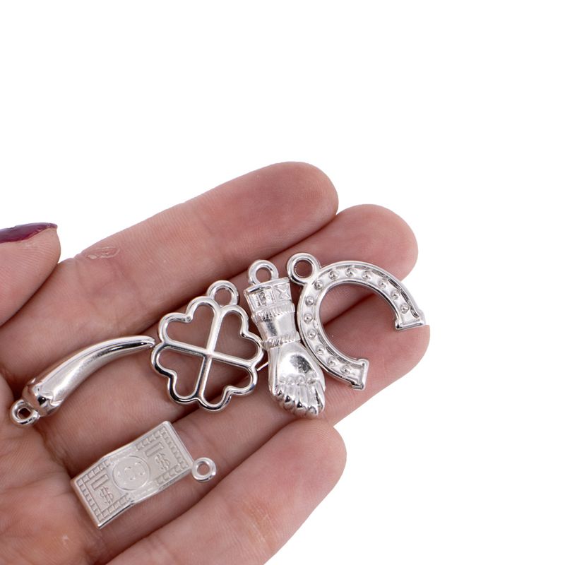 Este pingente traz uma seleção de amuletos da sorte em ABS de alta qualidade, com acabamento detalhado e visual encantador. Perfeito para composições criativas em colares, pulseiras, chaveiros ou acessórios decorativos. Leve, resistente e cheio de significado, é ideal para quem busca peças que unam espiritualidade, proteção e um toque moderno.