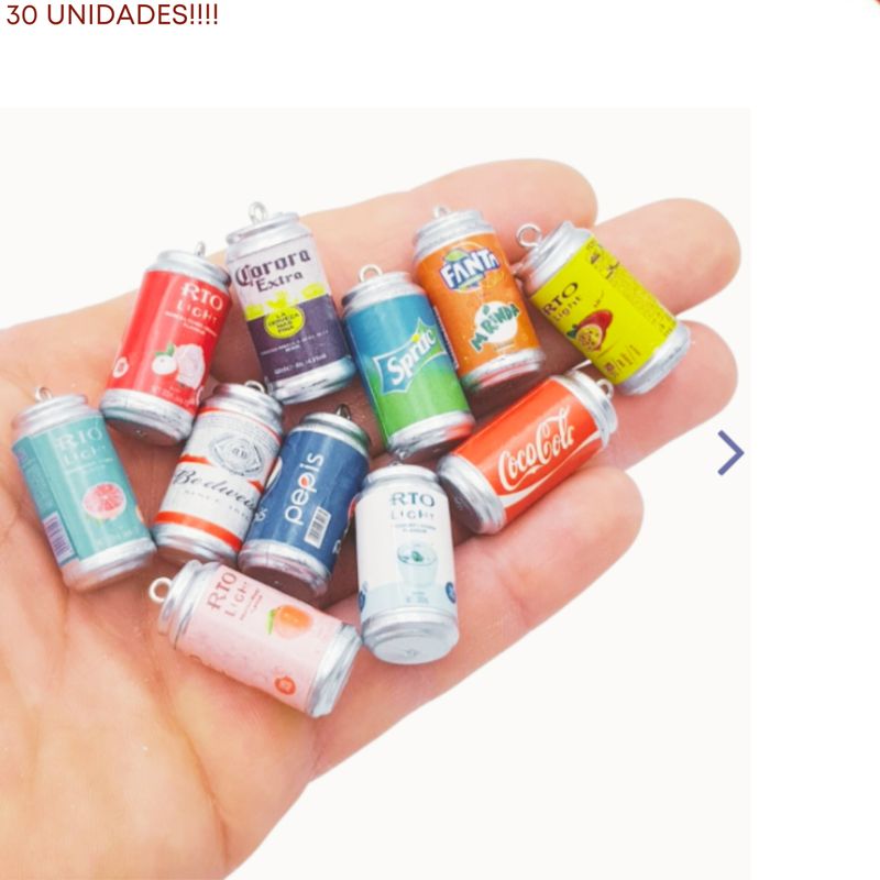 Pingente Bebida Em Lata 44X22mm Em Resina Com 30 Peças