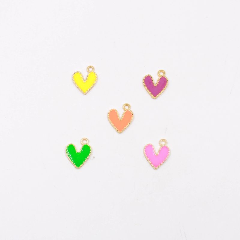 Produzido em zamac, o pingente coração neon resinado é ideal para confecção de bijuterias, decorações, lembrancinhas e muito mais